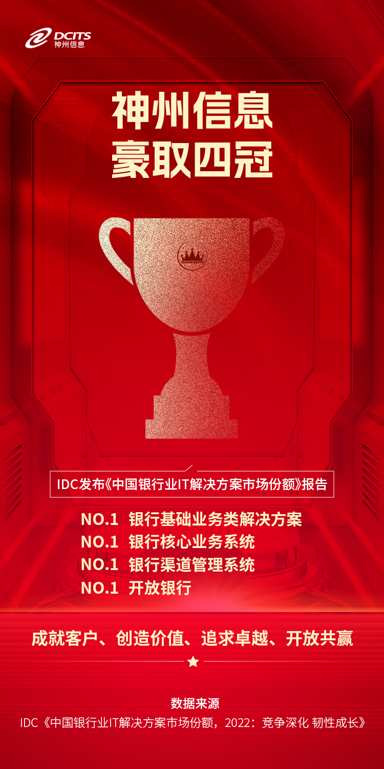 7月13日,IDC 正式发布《中国银行业IT解决方案市场份额,2022:竞争深化 韧性成长》报告,BB贝博艾弗森官网凭借雄厚的金融数字化实力再次豪取多项市场第一。
